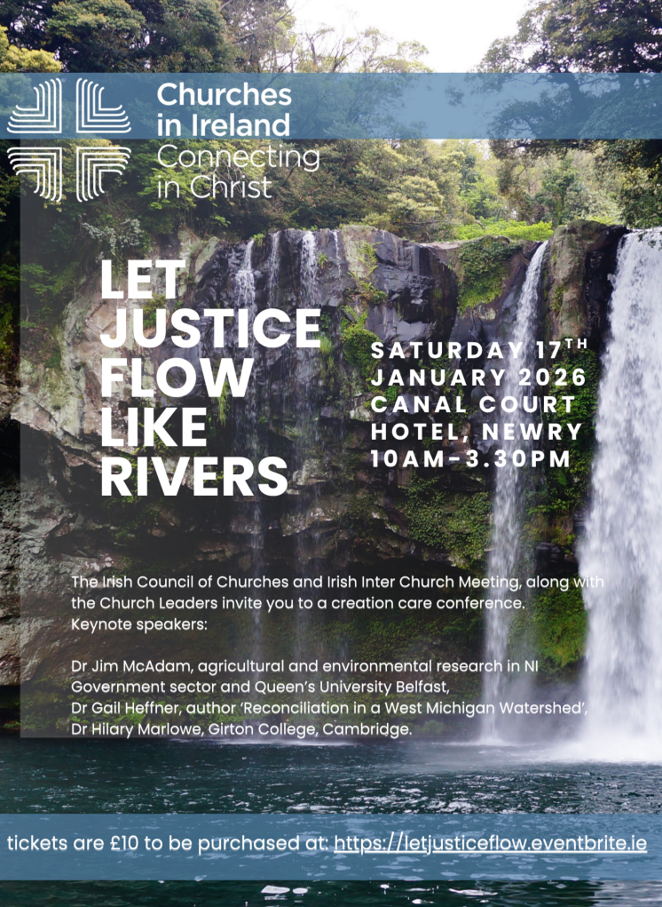 Entitled “Let Justice Flow Like Rivers”, the conference will take place on Saturday 17th January 2026, from 10.00am to 3.30pm in the Canal Court Hotel, Newry and will focus on how churches can respond credibly and practically to the ecological crisis through theology, science, reconciliation and action.